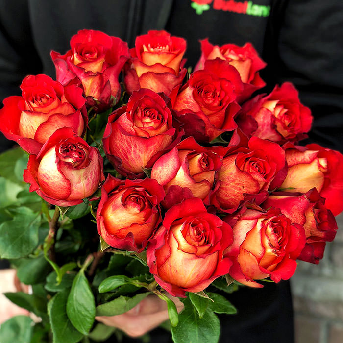 15 еквадорських троянд Ігуасу 80-90 см – це букет, який вражає своєю яскравістю та грацією. Відтінки червоного з легкими нотами помаранчевого роблять троянди Ігуасу справжньою перлиною серед квітів. Їхній великий бутон та довгі стебла надають букету елегантності й статусу.
