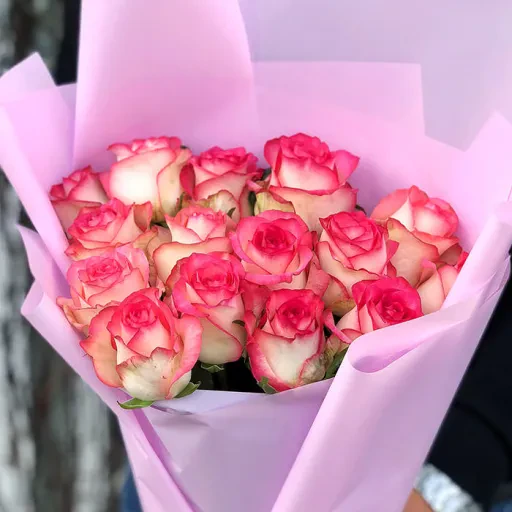 Букет 15 троянд Джумілія — це елегантний подарунок, що підкреслить важливість моменту. Складається з 15 троянд сорту "Джумілія", які відомі своєю незвичайною красою: пелюстки ніжного рожевого кольору з обрамленням яскравішого відтінку. Завдяки своїй романтичній палітрі, букет чудово підійде для святкування дня народження, ювілею, освідчення в коханні чи навіть як вдячність близькій людині.