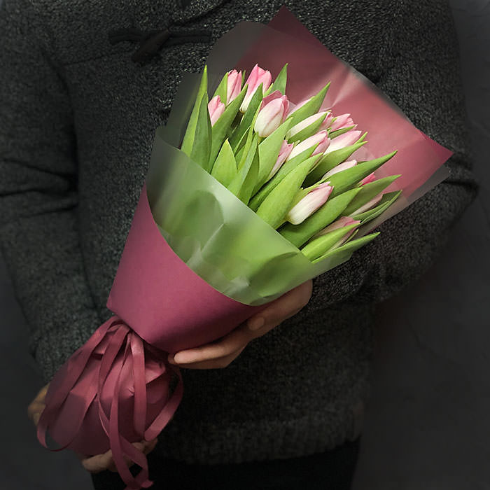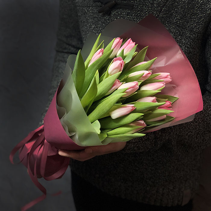 15 рожевих тюльпанів