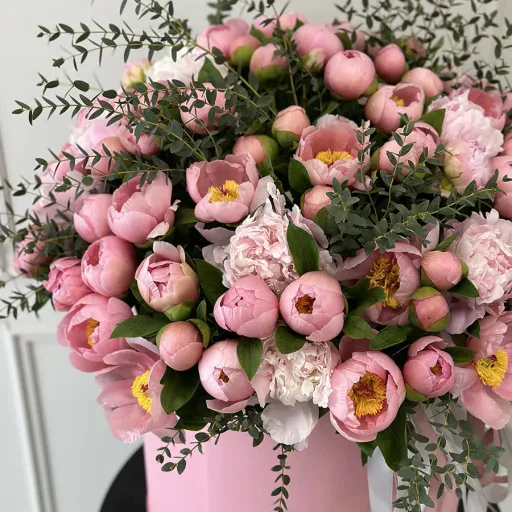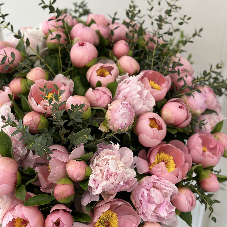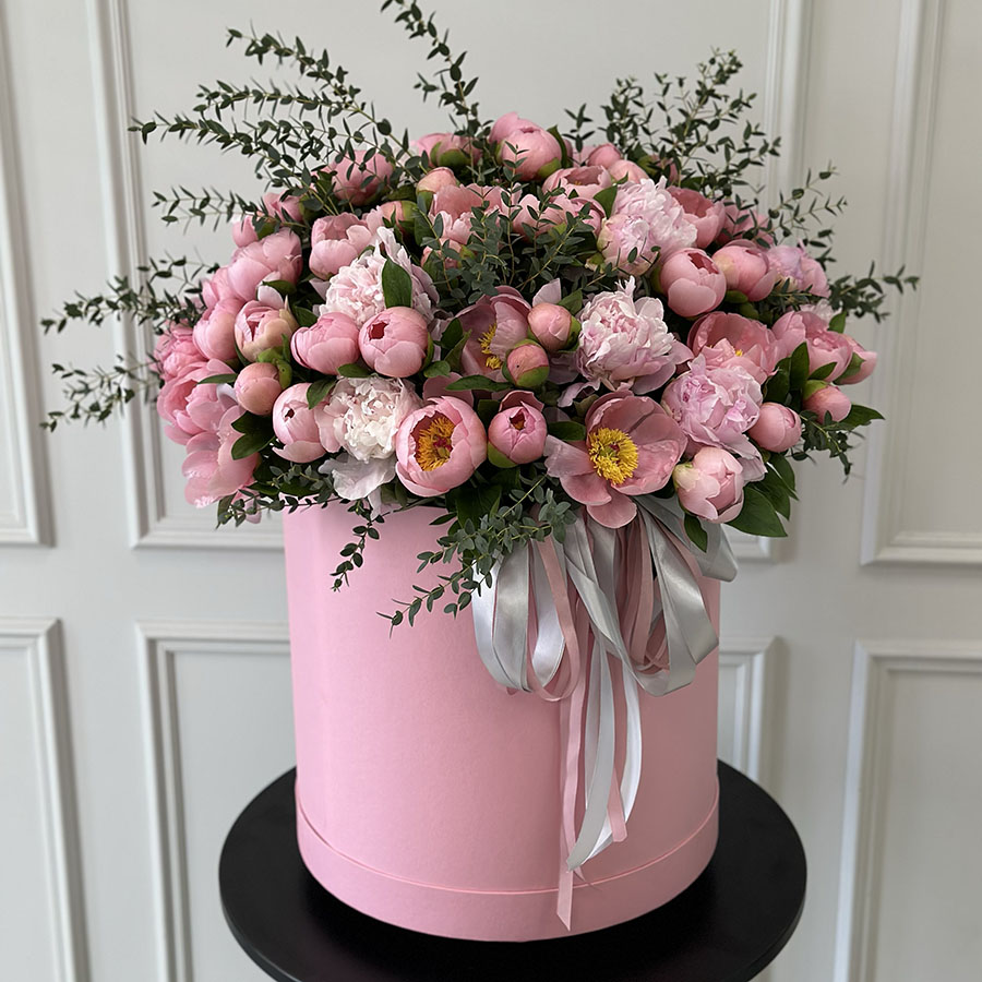 Замовте букет із 151 рожевої півонії в коробці у квітковому магазині в Василькові. Для особливих випадків перегляньте наші букети з кенійської троянди.