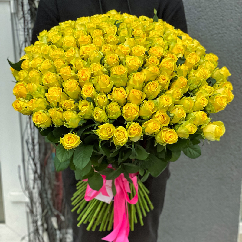 Замовляйте 151 жовту троянду 60 см з доставкою, щоб створити справжнє враження. Ознайомтесь із нашим квітковим магазином у Боярці або перегляньте інші букети з жовтих троянд.