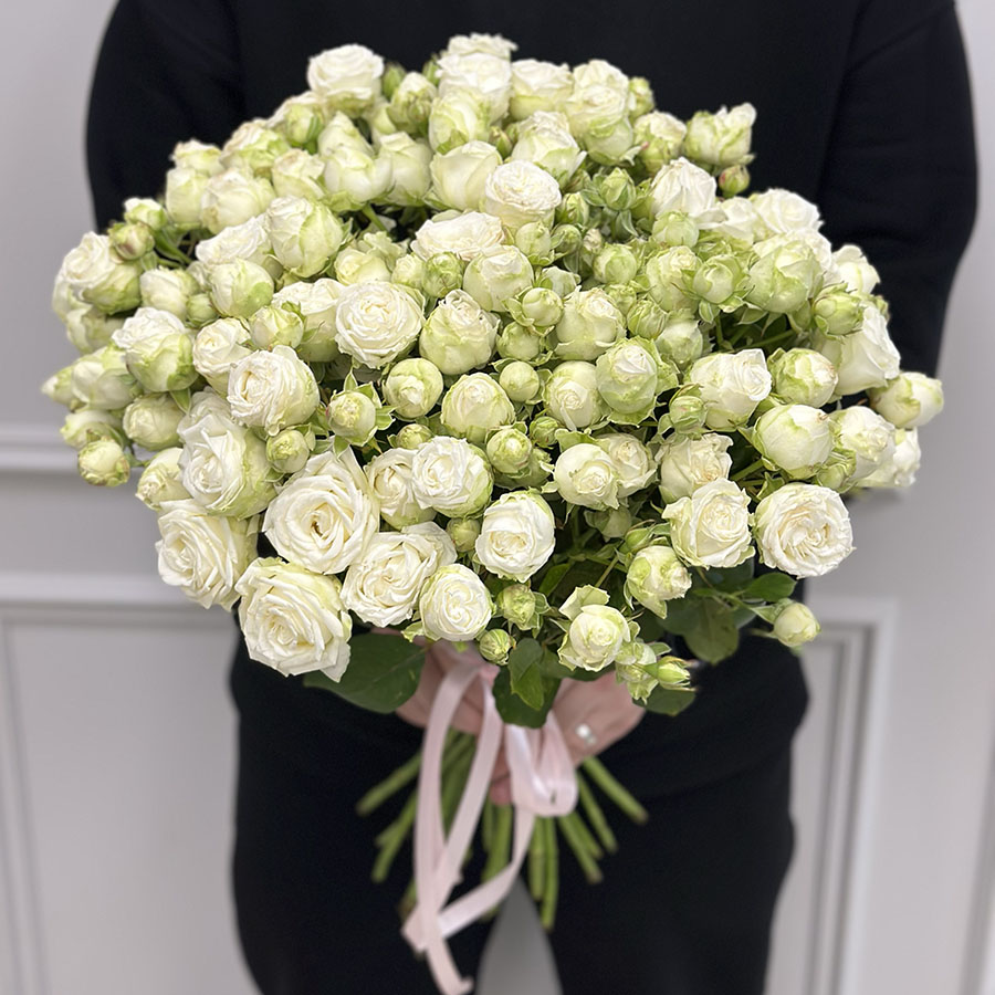21 кущова півоноподібна троянда в асортименті – це витончений вибір для тих, хто цінує вишуканість та гармонію. Цей букет створено із 21 кущової троянди сорту Міс Бомбастік, яка славиться своєю півоноподібною формою та неперевершеною ніжністю. Квітки білого кольору символізують чистоту, почуття захоплення та невинність, тому цей букет стане ідеальним подарунком для весільних урочистостей, ювілеїв чи навіть як подяка близьким.