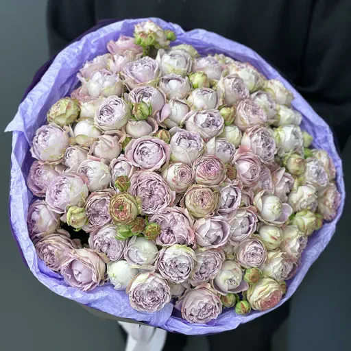 Букет 25 кущових троянд Блоссом Баблз — це справжнє втілення витонченості та розкоші. Ніжні кущові троянди з делікатним бузковим відтінком створюють вишукану композицію, яка привертає увагу та викликає захоплення. Цей букет ідеально підійде для того, щоб передати найщиріші емоції та справити незабутнє враження.