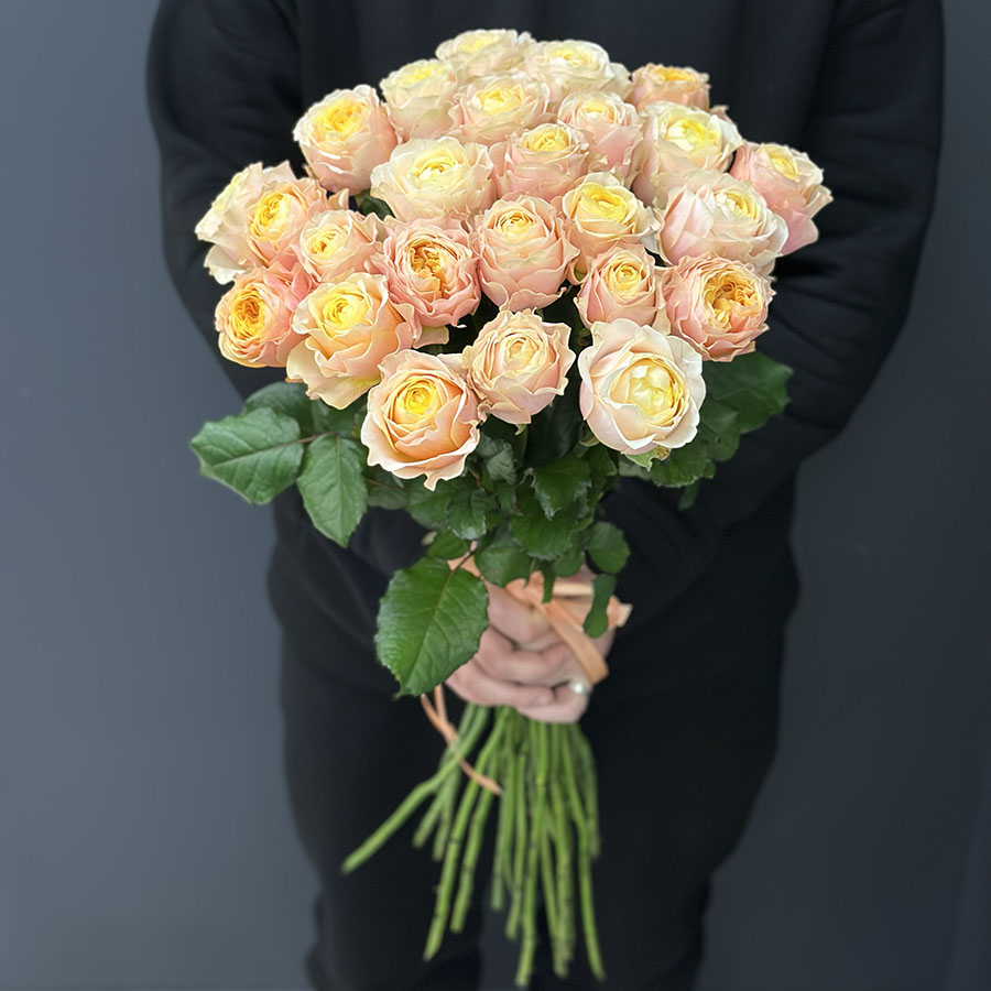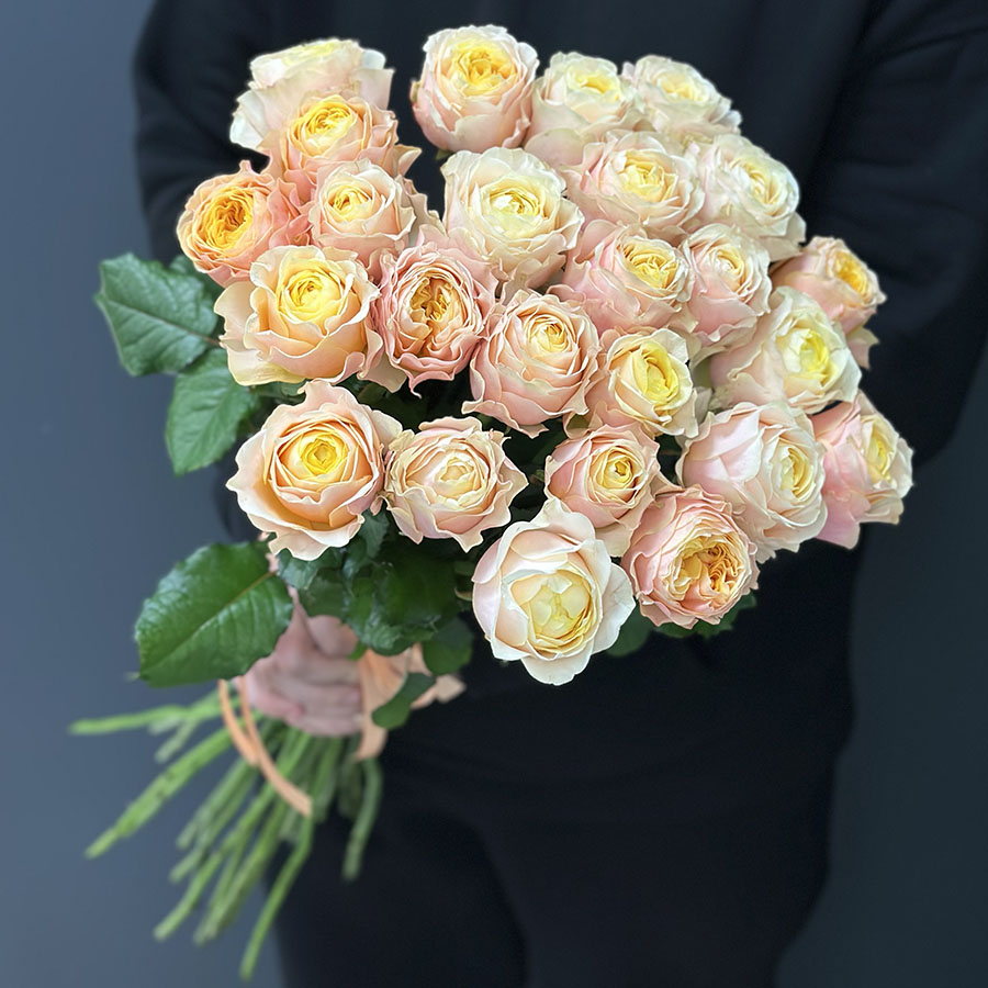 Букет 25 піоноподібних троянд Peter’s Park – це ніжна та витончена композиція, що поєднує в собі чарівність класичних троянд і пишність півоній. Завдяки унікальній формі пелюсток і теплому кремово-персиковому відтінку, цей букет випромінює елегантність, ніжність і витонченість.