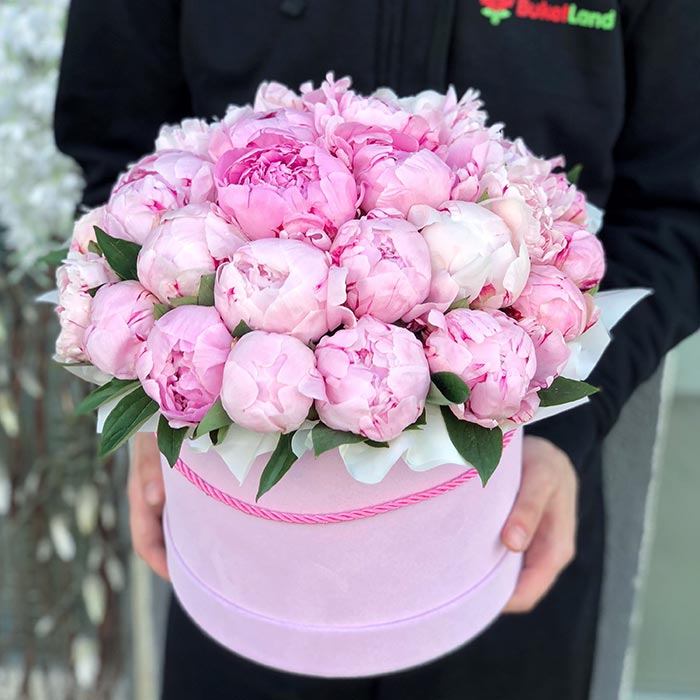 29 півоній в капелюшній коробці - це красивий твір мистецтва від флористів служби доставки квітів BuketLand. Вибираючи 29 півоній в капелюшній коробці ви зможете здивувати кохану унікальною композицією. Швидка доставка ваших 29 півоній в капелюшній коробці по Києву, великих містах як Хмельницький, Вінниця, Житомир та більш дрібних містах України здійснюється максимально швидко. Наша доставка квітів зробить все що потрібно щоб ви отримали найкращий результат, а весь процес ми беремо на себе!