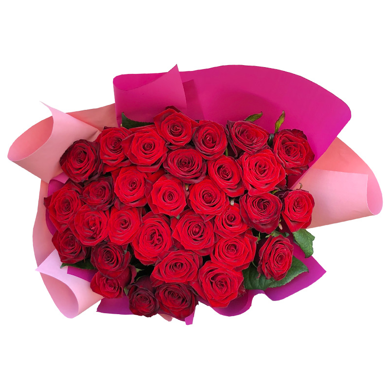 Кількість квітів: 33 червоні троянди.