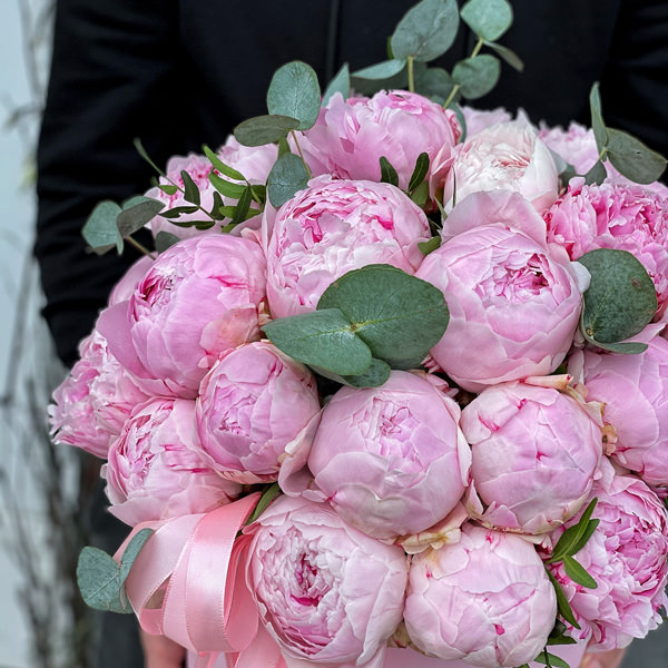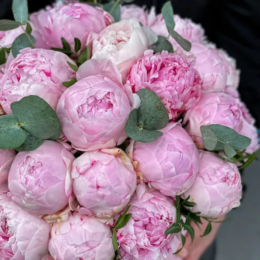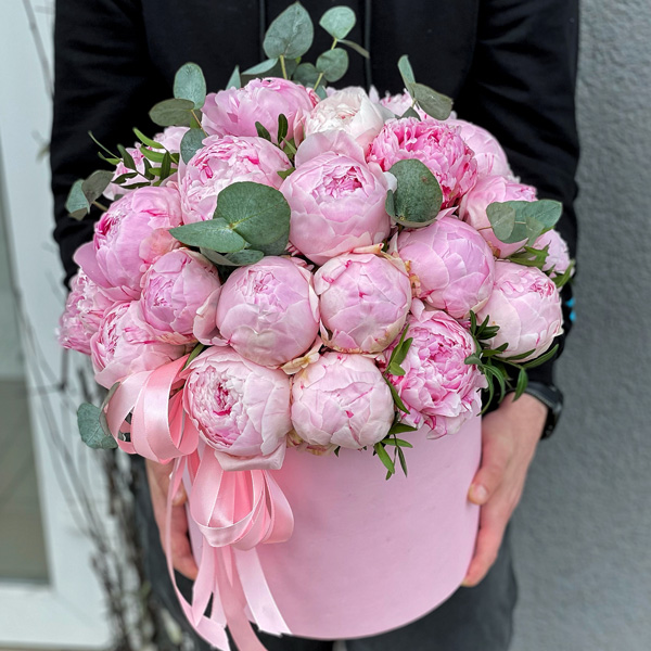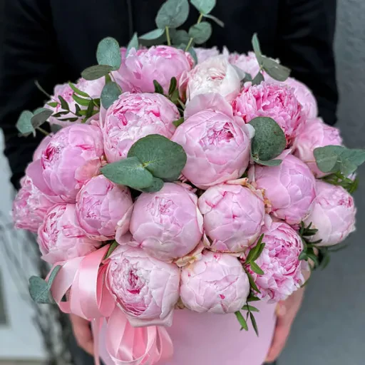 37 голландських півоній Sarah Bernhardt в шляпній коробці