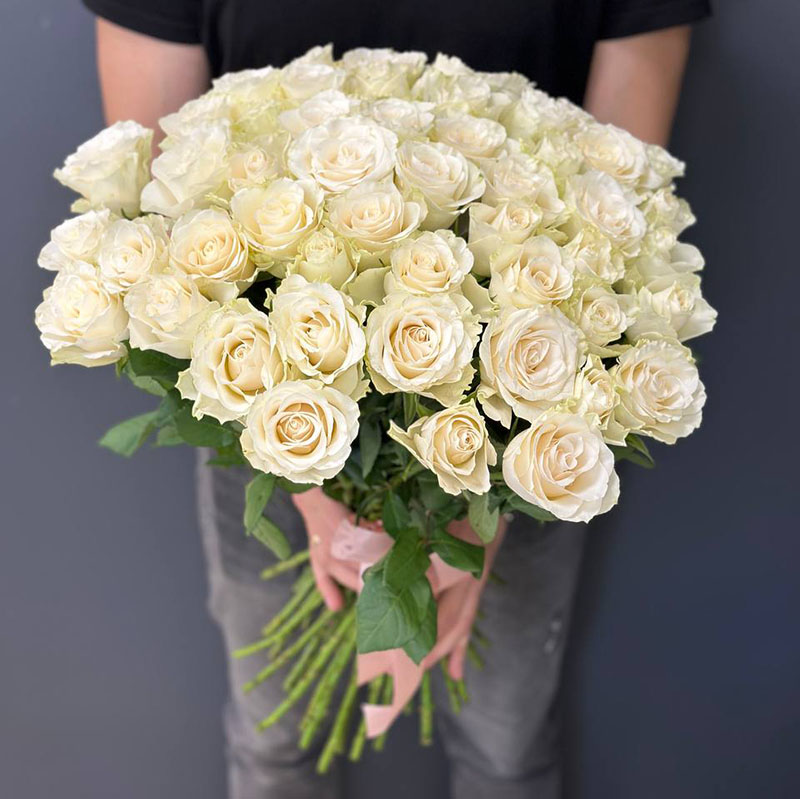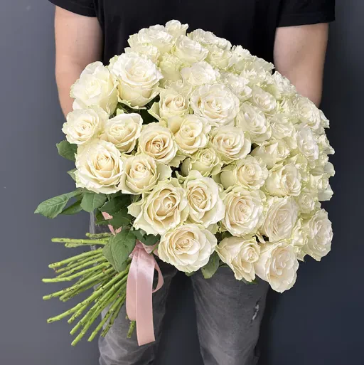 51 біла імпортна троянда — це символ елегантності та ніжності, ідеальний вибір для особливих моментів. Букет складається з ретельно відібраних троянд преміум-класу з бездоганно білосніжними пелюстками, які чудово доповнені свіжою зеленню. Такий букет стане ідеальним подарунком для весілля, ювілею, або просто для того, щоб зробити сюрприз коханій людині.