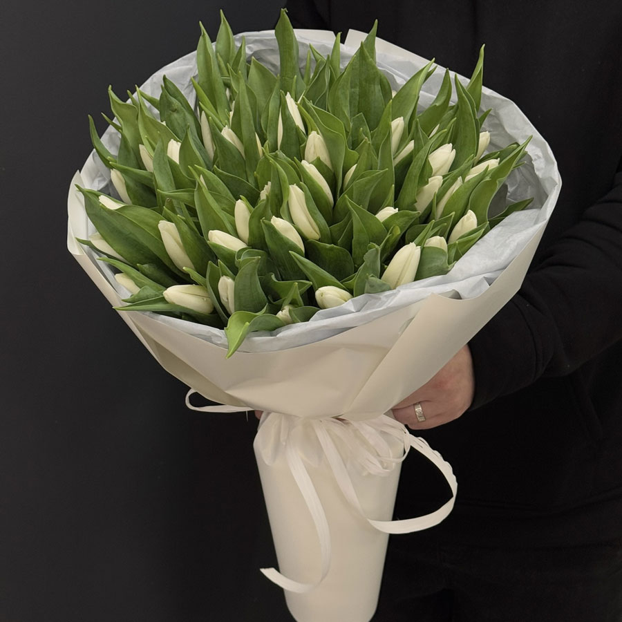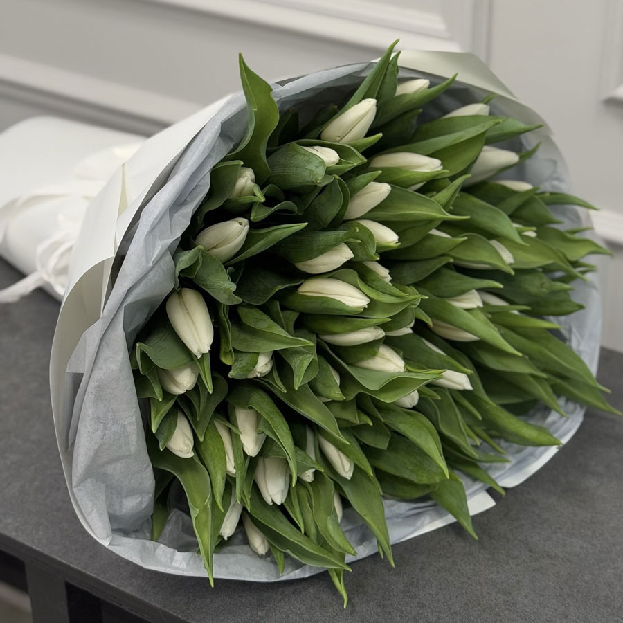 Ми здійснюємо доставку з 09:00 до 20:30 безкоштовно. Замовити 51 білий тюльпан з доставкою – це просто: оберіть комплектування, додайте у кошик і вкажіть адресу.