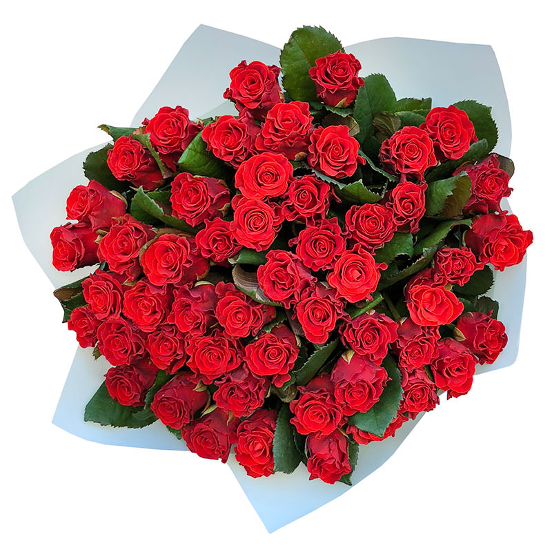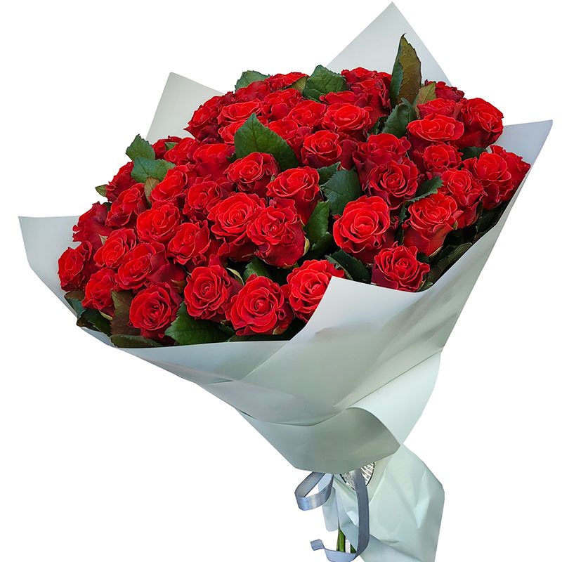 Склад букета включає 51 розкішну троянду висотою 50 см. Їх яскраво-червоний колір, акуратно підібрана упаковка та ідеальне поєднання форм створюють враження бездоганної композиції. Букет доповнений стрічкою, що додає витонченості.
