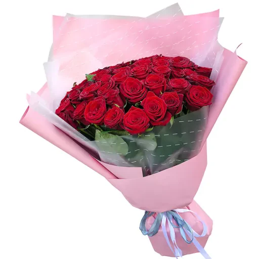 Букет з 51 червоної троянди, довжиною 60 см - втілення урочистості і розкоші. Його можна піднести як подарунок, що запам'ятається на якусь важливу подію, так і просто як знак уваги коханій дівчині. Стебла червоних троянд довгі і міцні, букет виглядає дуже акуратним і пишним, а його свіжий легкий аромат при правильному догляді буде радувати одержувача довгий час. Вибирайте і замовляйте букет з 51 червоної троянди з доставкою в Києві і по всій Україні з інтернет магазином цвтов і подарунків BUKETLAND.