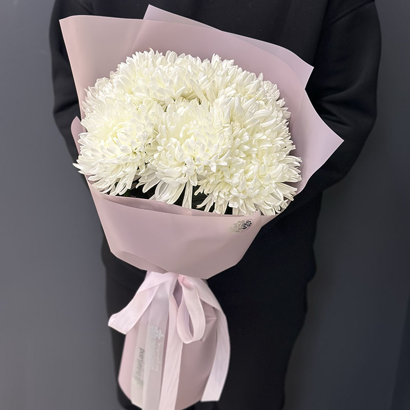 - Склад: 7 великих одноголових хризантем білого кольору.