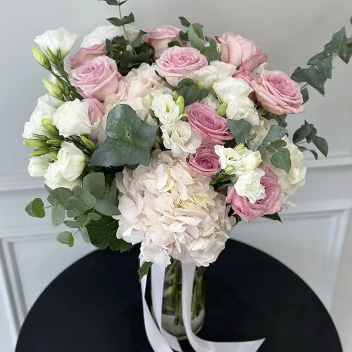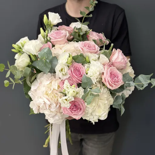 Цей авторський букет від флориста у ніжних тонах – витончене поєднання елегантності та романтики. Завдяки гармонійному поєднанню квітів і пастельних відтінків, цей букет стане ідеальним подарунком для особливих моментів. Він підходить для ювілеїв, весіль, пропозицій чи привітання з важливими подіями, створюючи незабутню атмосферу любові та тепла.