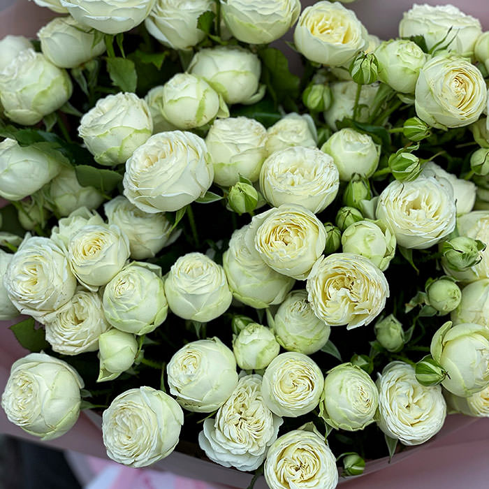Букет з 11 білих суцвіть унікального сорту піоноподібних кущові троянди підкорить своїм шармом будь-якого: махрові пелюстки, зібрані в щільних бутонах, що віддалено нагадують піони, з характерним солодкуватим ароматом. Букет виглядає пишним, широким, а сяючий білий, практично перламутровий відтінок додає композиції ніжності і м'якою стриманості. Замовити букет з 11 піоновидні кущові троянд з кур'єрською доставкою в Києві або іншому місті України не складе особливих труднощів, але подарує багато радості одержувачу!