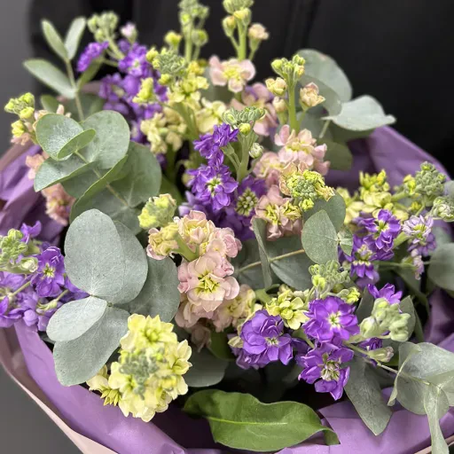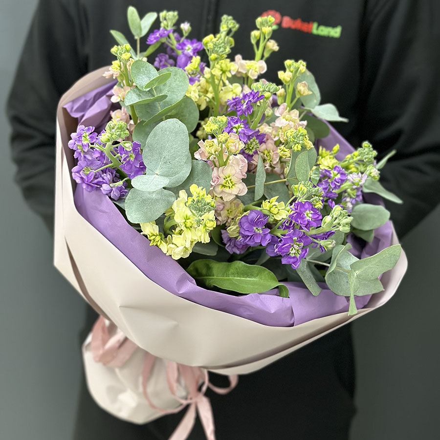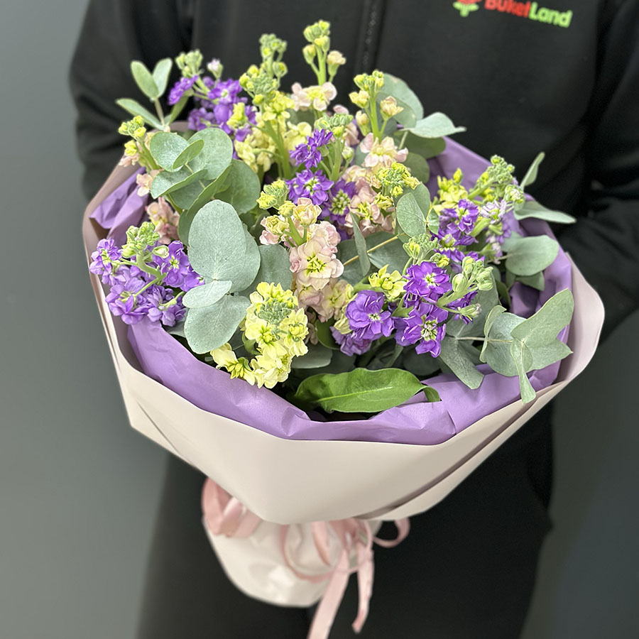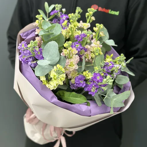 Букет з 15 різнокольорових матіол від BuketLand — це витонченість і стиль у кожній деталі. Матіоли, відомі своїм чарівним ароматом та різноманіттям кольорів, створюють атмосферу ніжності й тепла. Поєднання рожевих, жовтих і фіолетових відтінків разом із декоративною зеленню надає букету особливого шарму.