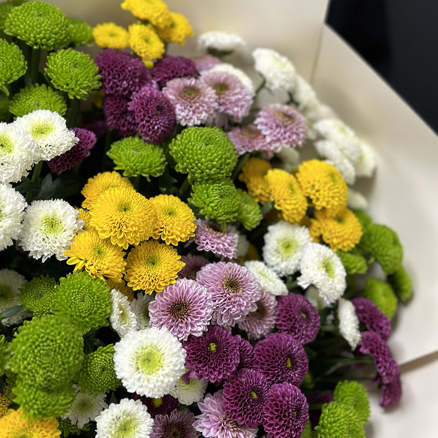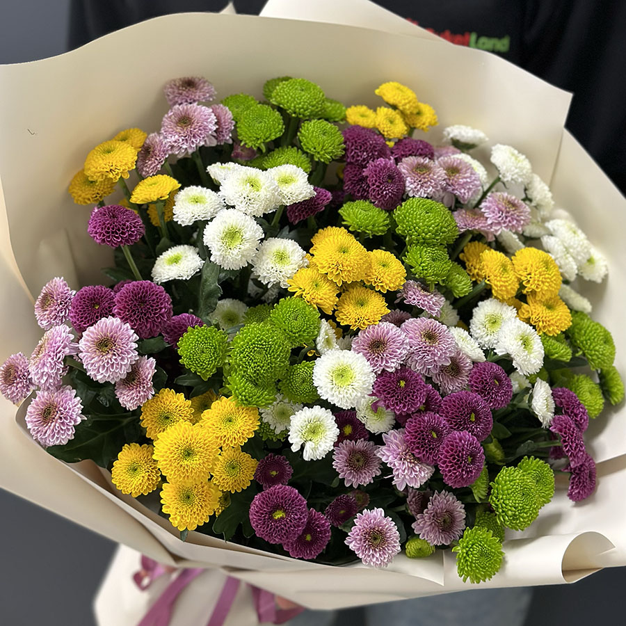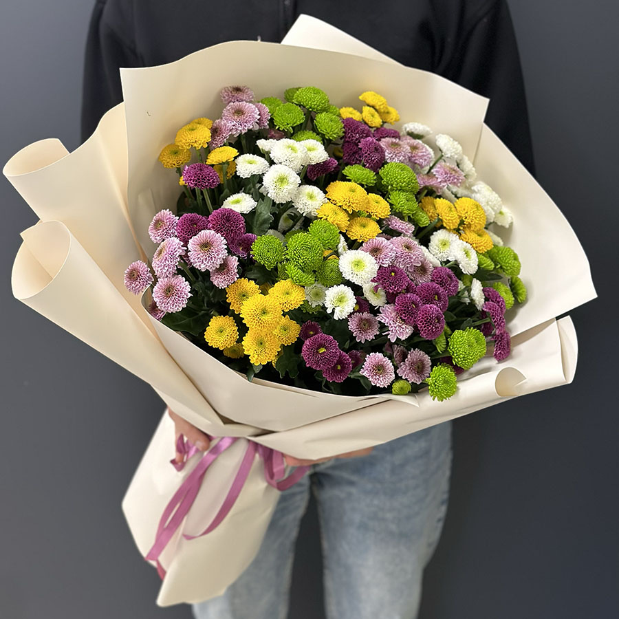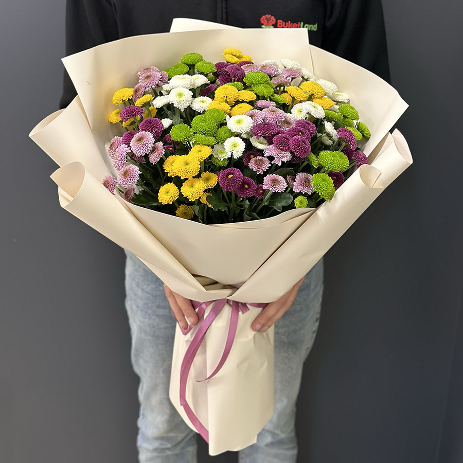 Букет з 25 хризантем сантіні мікс