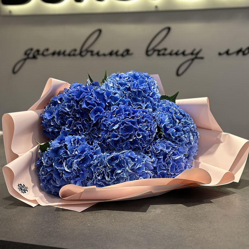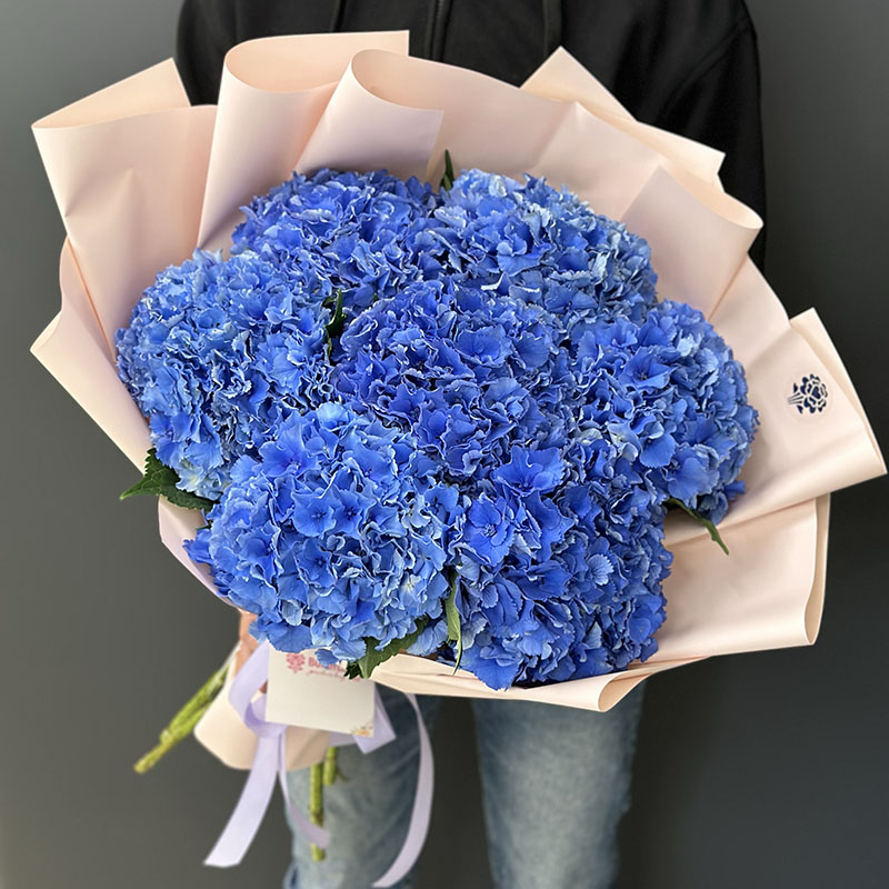 Букет із 7 синіх гортензій — це справжній символ ніжності та витонченості. Насичений синій колір гортензій надає букету унікальності та робить його ідеальним вибором для тих, хто цінує стиль і природну красу. Цей букет чудово підходить для важливих подій, особливих моментів або просто як спосіб висловити щирі емоції.