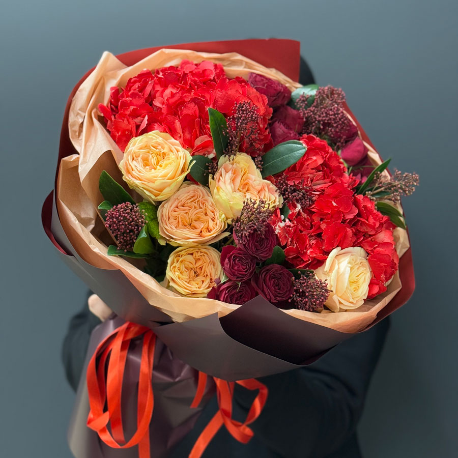 Букет «Енергія кохання» — це композиція, яка несе тепло, пристрасність і ніжність у кожній квітці. Його яскраві кольори ідеально передають атмосферу радості й особливості моменту. До складу букета входять: