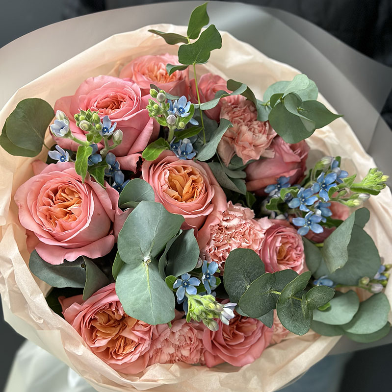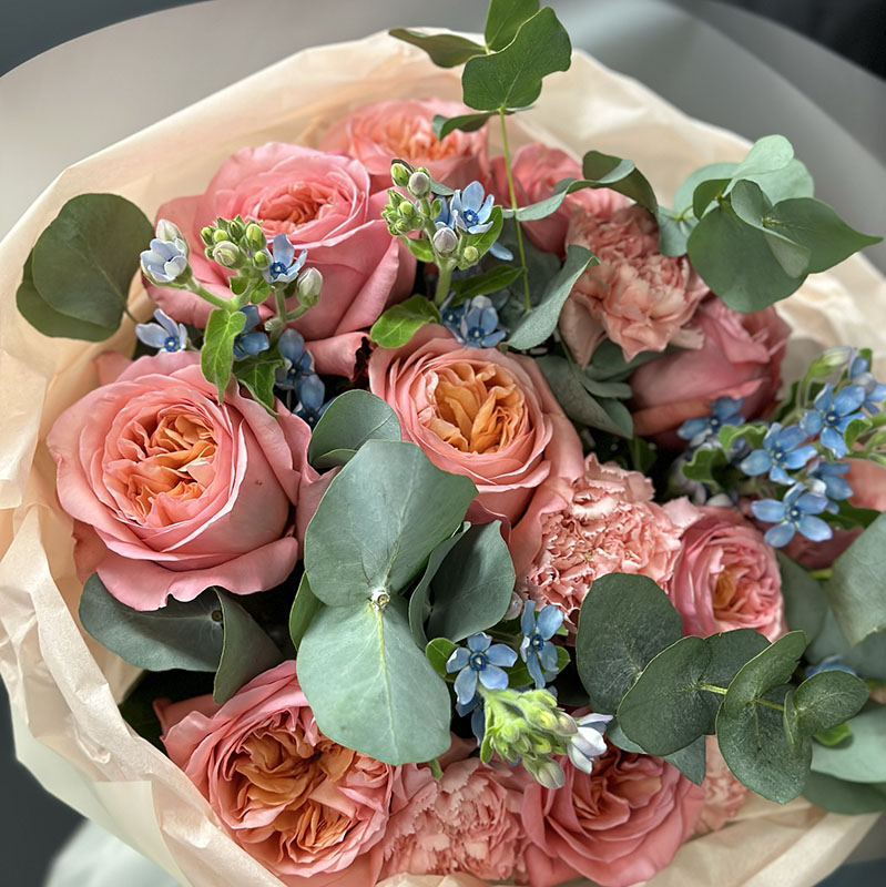 - Евкаліпт – натуральна зелень, яка наповнює букет природним шармом і свіжістю.