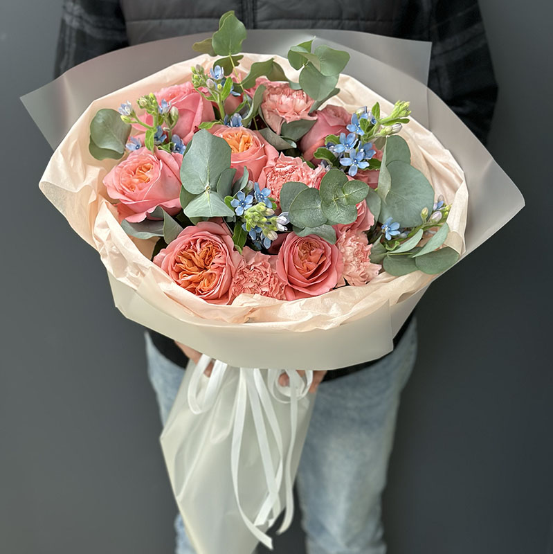 Букет квітів «Felicita» – це чарівне поєднання ніжності, витонченості й теплих емоцій. Його м’яка палітра та гармонійна композиція роблять його чудовим вибором для вітання на день народження, річницю чи іншу важливу подію. Цей букет випромінює радість і турботу, які оцінить кожен.