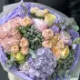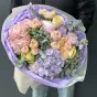 Гортензія символізує щирість і вдячність, півонії додають нотки романтики, а брунія підкреслює сучасний стиль букета. Завдяки делікатним пастельним відтінкам у поєднанні з яскравими акцентами, букет виглядає свіжо та неповторно.