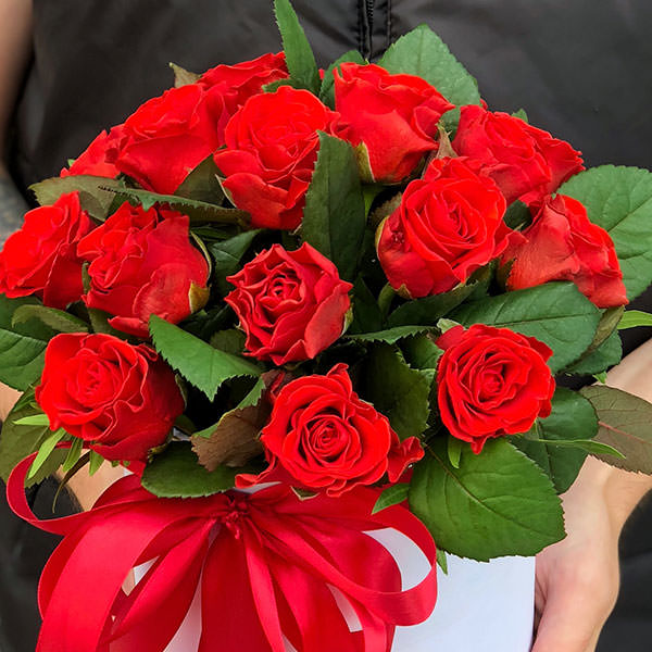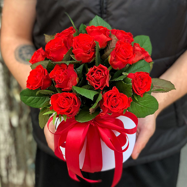 19 red roses in a hat box