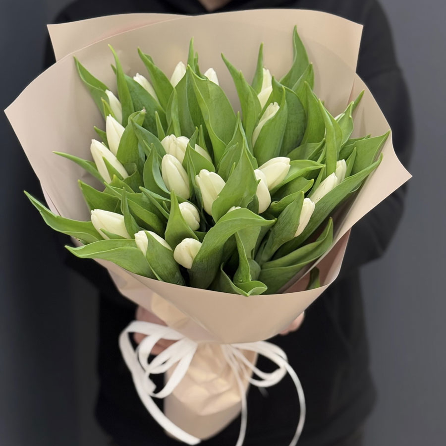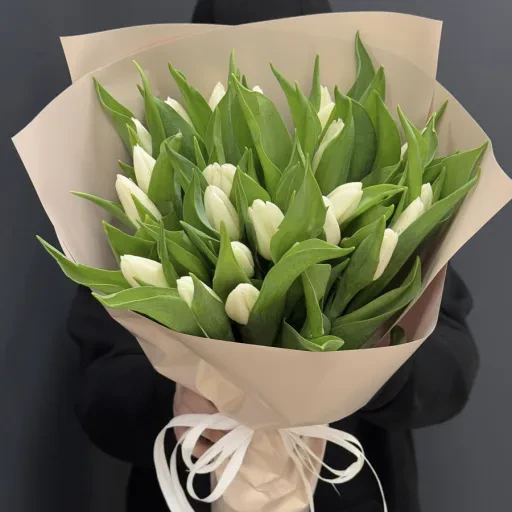 The bouquet 25 white tulips is a perfect choice to convey tenderness, purity, and deep respect. White tulips symbolize new beginnings, harmony, and sincerity, making this bouquet a great gift for birthdays, anniversaries, weddings, or as a reconciliation gesture.