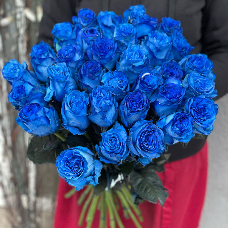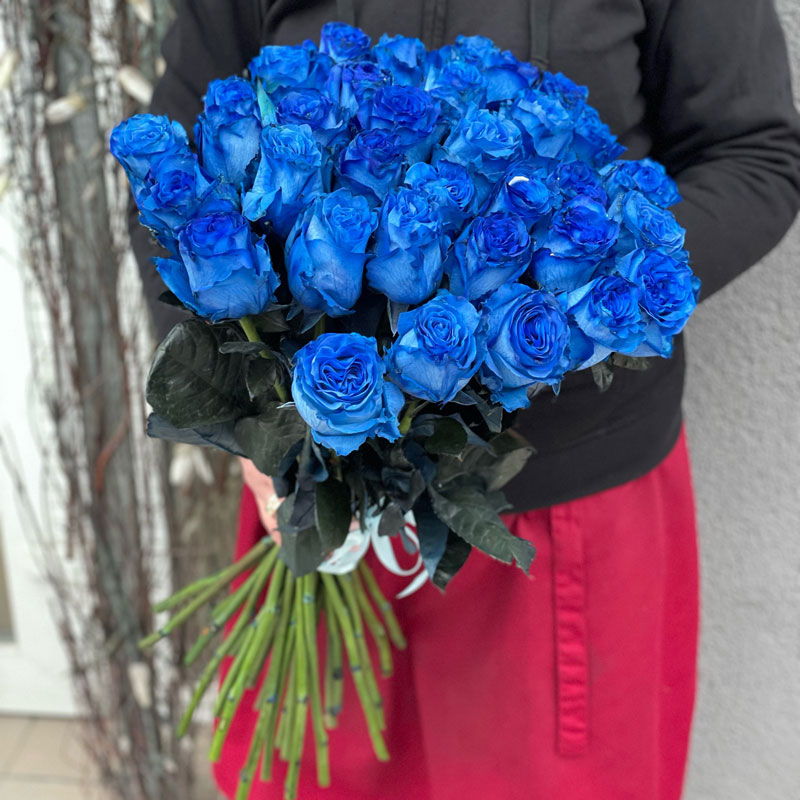 Order the "33 Dutch Blue Roses 60 cm" from our flower shop in Oseshchina. Discover more bouquets of blue roses to make your gift truly unforgettable.