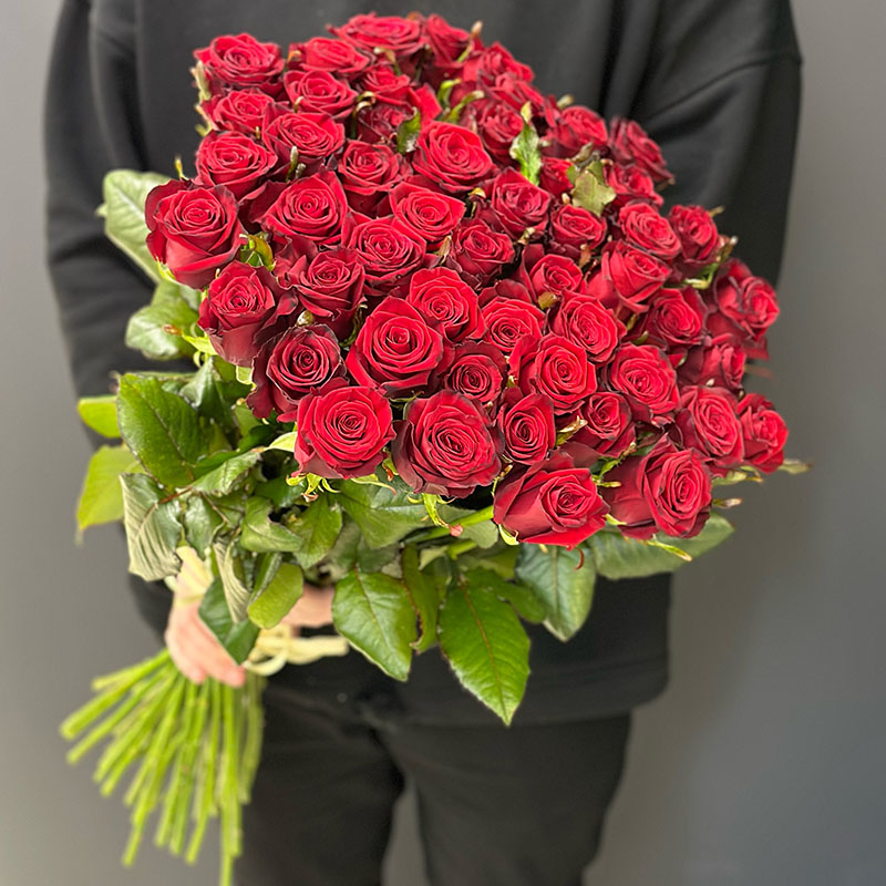 Order the 51 Long Red Roses 70 cm bouquet now from our flower shop in Motyzhyn. Check out our collection of bouquets with red roses for more options.