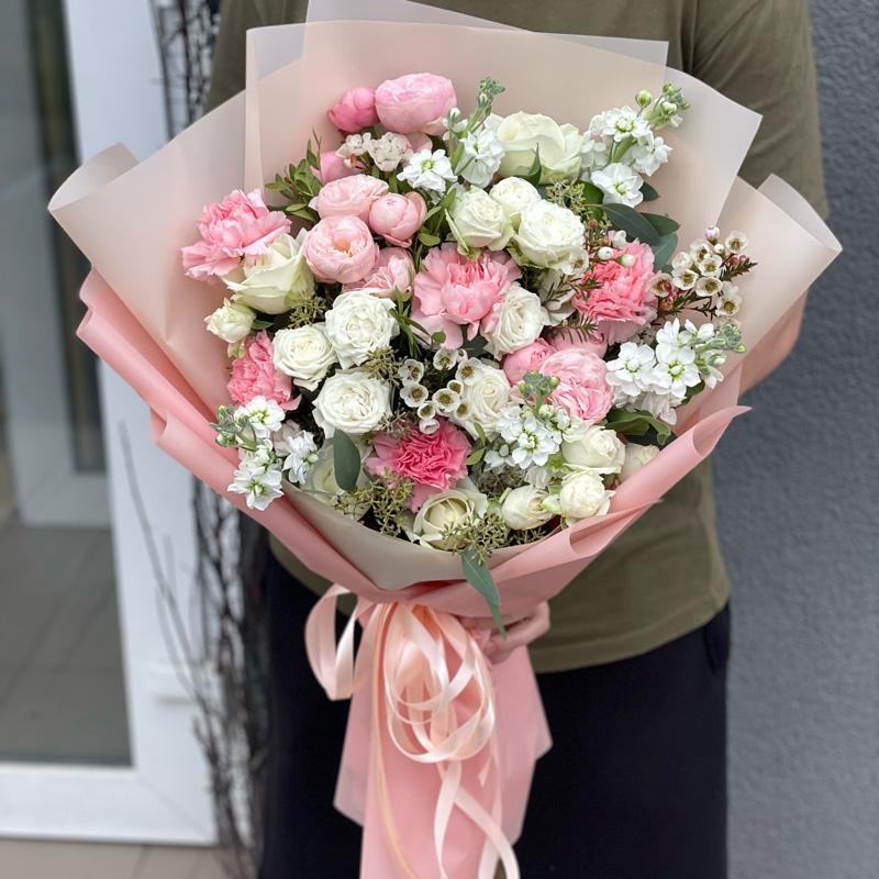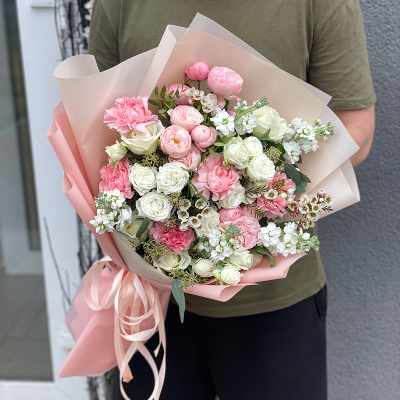 The author's bouquet of flowers «Miranda» is a unique work of art from professional florists of the BuketLand flower delivery service. Choosing the author's bouquet of flowers «Miranda» you can surprise your girlfriend with an unusual composition. Prompt delivery of your author's bouquet of flowers «Miranda» in Kyiv, major cities like Cherkasy, Uzhgorod, Chernihiv, as well as other cities of Ukraine is carried out as quickly as possible. Our flower delivery service in Ukraine will do everything necessary for you to receive a beautiful bouquet as a gift, and we will take care of the whole process!