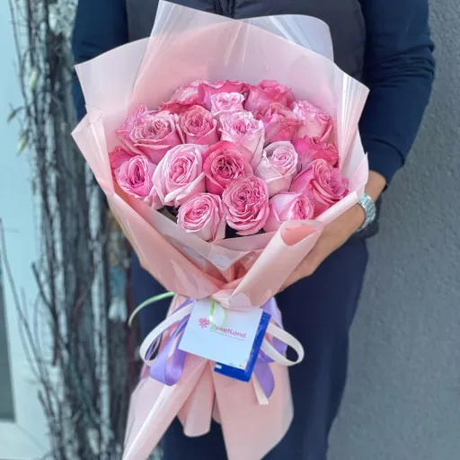 The bouquet of 21 pion-shaped rose is a symbol of elegance and romance, perfect for special occasions. The soft pink shade adds a touch of delicacy, while the premium floral wrapping emphasizes sophistication. It’s an ideal choice for celebrating a birthday, anniversary, or expressing love.