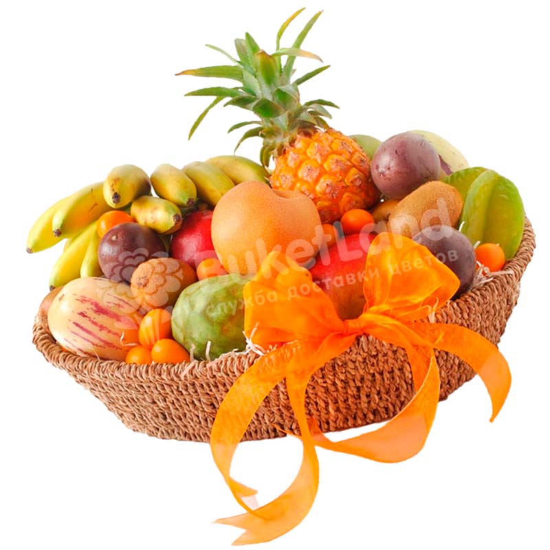 Fruit baskets have been popular for a long time, and for good reason. Fruits always radiate warmth and joy. Presented in a basket, they acquire a special meaning, involuntarily turning into a gift. BuketLand designers have created a whole line of such gifts with different meanings, names, and designs. Among them is the Tropical Mix Fruit Basket, which contrasts strongly with a number of others. This is a bright and original composition, which is distinguished not only by the design of the basket itself, but also by its contents - exclusively tropical fruits that are difficult to grow in your own garden. In a word, exotic. It also manifests itself in the form of a basket, made in a special style. It is decorated with a bright ribbon, the color of which literally echoes the content, emphasizing the significance of the gift. Such a present is a gift to near and far, relatives and friends. Fruit basket "Tropical mix" will definitely decorate any table - wedding, birthday, Christmas. And it is possible without a table at all, there would be a reason. BuketLand delivery works around the clock. Do not get tired of making nice gifts, leave a request on the site. Important - when delivering a fruit basket, an application must be left in advance.