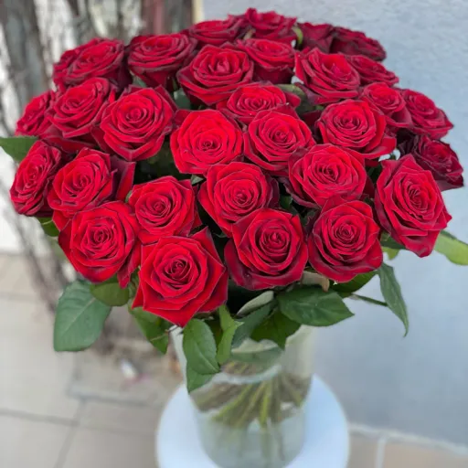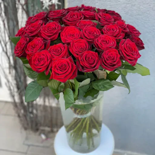Red rose Grand Prix 60 cm – a true symbol of passion, love, and luxury. This mono-bouquet features large, deep red roses of premium quality, admired for their elegant petal shape. The 60 cm height adds a sophisticated touch, making the bouquet stunning in any vase.