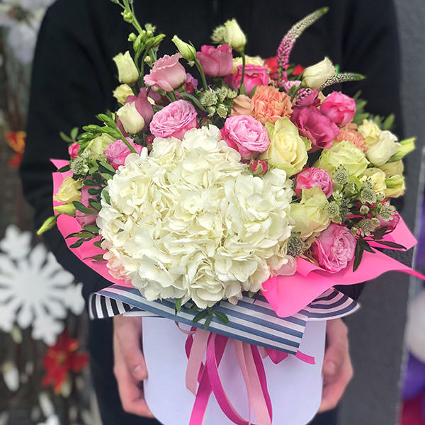Flowers in a hat box «Magic of the senses» is a professional work of art from florists of the flower delivery service BuketLand. Choosing flowers in a hat box «Magic of the senses» you can surprise your favorite with the author's composition. Prompt delivery of your flowers in a hat box «Magic of the senses» in Kiev, large cities like Cherkassy, Poltava, Nikolaev and other cities of Ukraine is made in the shortest possible time. Our flower delivery service in Ukraine will do everything necessary for you to receive your wonderful bouquet, and we will take care of the whole process!