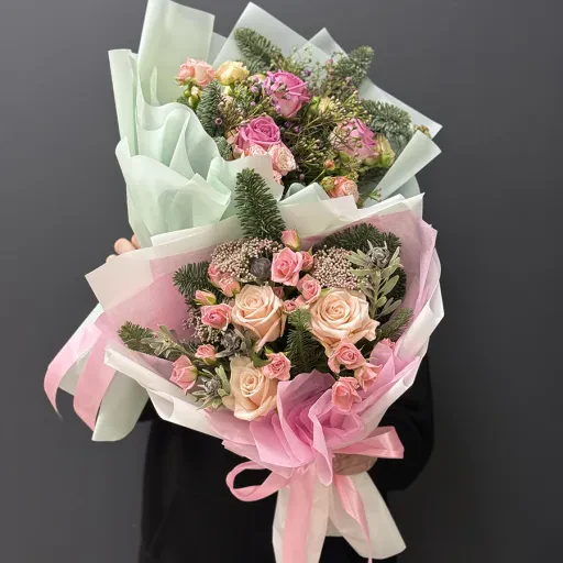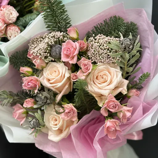 With BuketLand's reliable service, you can order the winter Bouquet in Pink Shades with delivery to your home or office. We guarantee the freshness of every flower.