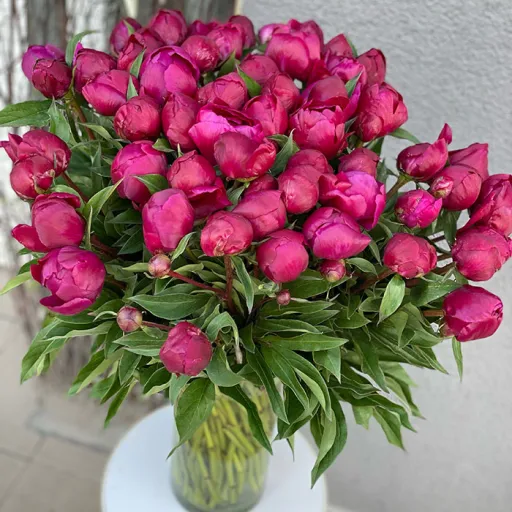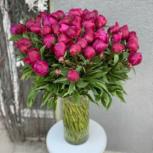 Поради щодо догляду: Щоб продовжити життя півоній, поставте їх у чисту воду кімнатної температури, регулярно змінюйте воду і тримайте подалі від прямих сонячних променів.