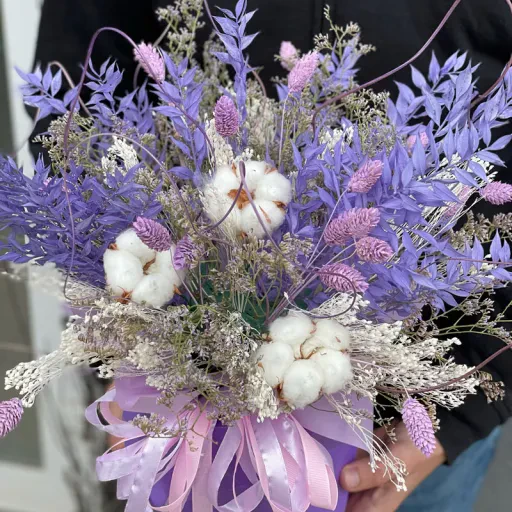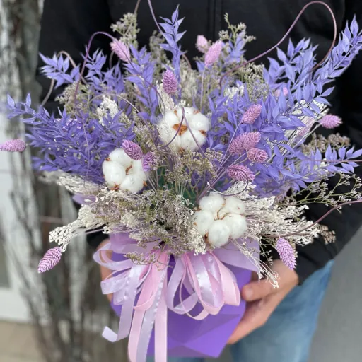 Букет із сухоцвітів - це завжди декоративна композиція, що нагадує мальовничу мініатюру. Сухоцвітами можна оформити дизайн будь-якого простору. Однак Композицію із сухоцвітів «Лісабон» можна і потрібно дарувати. Спектр свят буде дещо звужений у порівнянні з живими квітами, але приводів все ж таки знайдеться достатньо — дні народження, новосілля, корпоратив, особистий презент з певним натяком і т. д. про подарунок, який можна зробити жінці будь-якого віку. Кожна жінка зможе оцінити сухоцвіти, адже ці квіти не мають віку, і вони рішуче стирають усі межі. В основу Композиції із сухоцвітів «Лісабон» закладено глибокий блакитний колір, відтінений рожевим, білим та палевим. Вона повітряна та чарівна, що безумовно змушує мріяти.