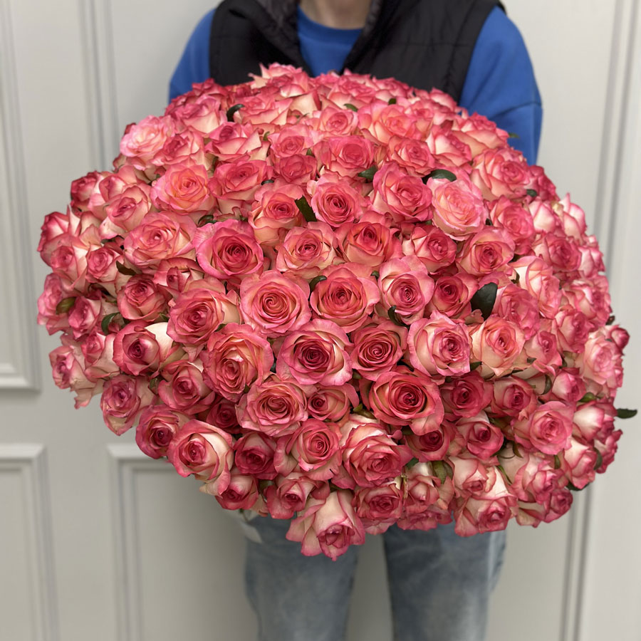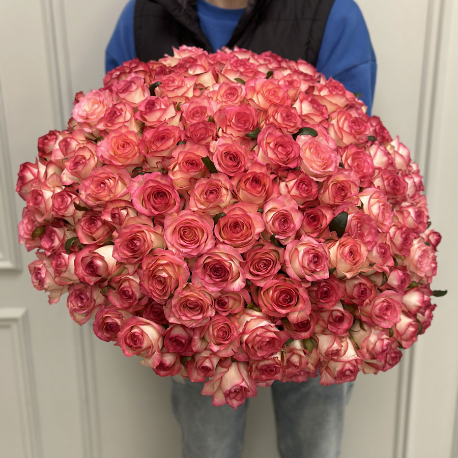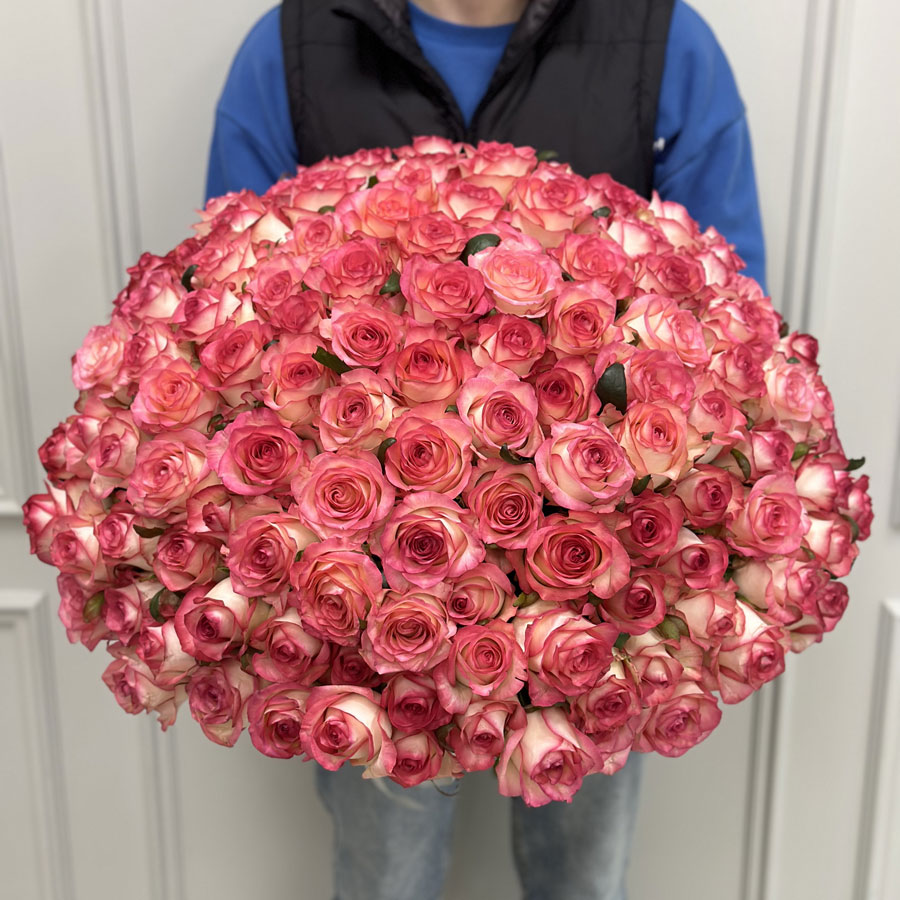 Букет 151 розовая роза Jumilia от BuketLand — это настоящий символ элегантности и романтики. Роза Jumilia отличается нежными розовыми оттенками, плавно переходящими в белую основу лепестков, создавая эффектный контраст. Композиция идеально подойдёт для выражения глубоких чувств или празднования особых событий.