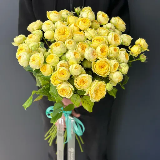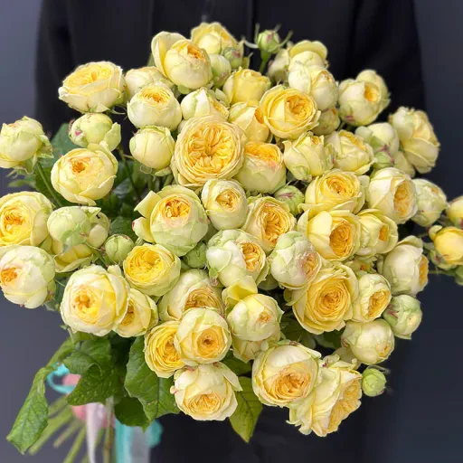 21 кустовая пионообразная роза Пиони Баблз – это нежность и тепло, собранные в одном букете. Яркий жёлтый цвет роз создаёт атмосферу солнечного настроения, а многослойные бутоны, напоминающие пионы, добавляют утончённости каждому цветку. Этот букет станет прекрасным выбором для любого праздника или просто как жест внимания.