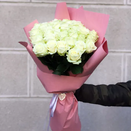 Заказать букет 33 белые розы 60 см с доставкой можно во всех городах Украины через наш магазин. Мы предлагаем разные форматы упаковки: обычный, премиум или VIP – выбирайте в зависимости от события.