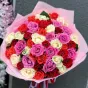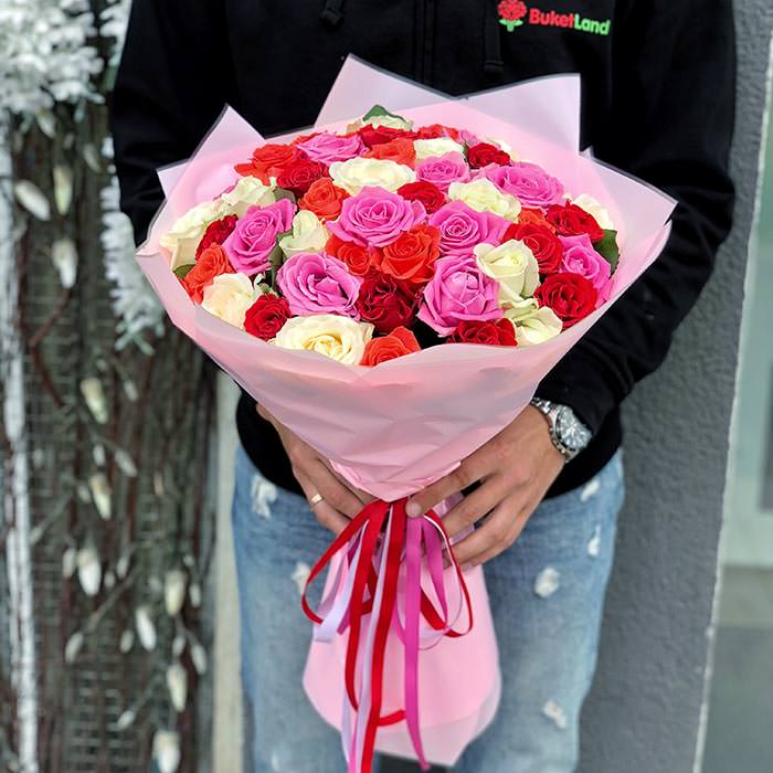 Свежесть букета сохранится дольше, если каждые два дня менять воду в вазе на чистую холодную.Оформить заказ в нашем цветочном магазине в Киеве очень просто. Также ознакомьтесь с другими букетами из роз микс.
