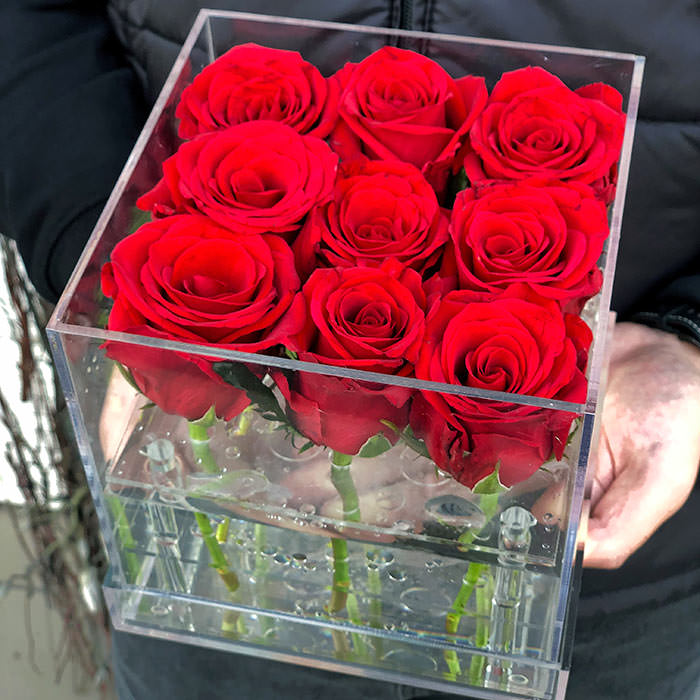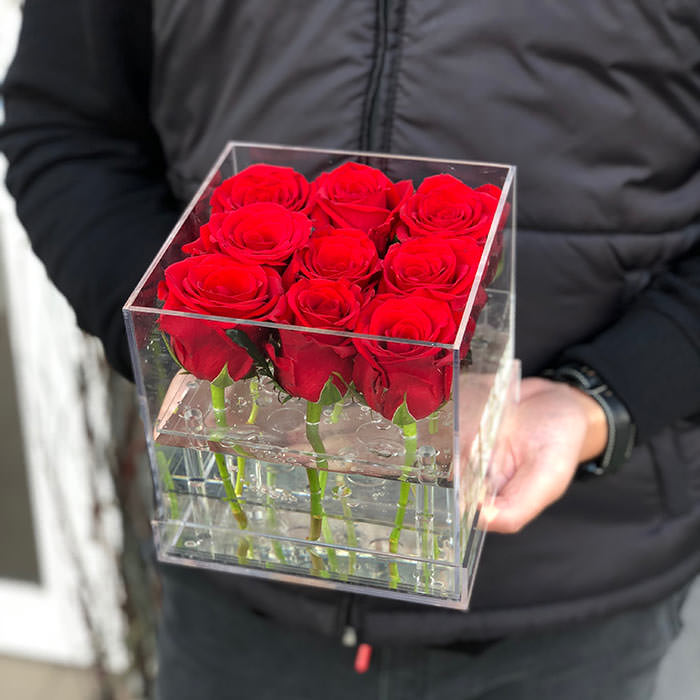 Акриловая коробка не только добавляет эстетики, но и делает уход за цветами максимально удобным. Внутри коробки находится резервуар для воды, который помогает цветам оставаться свежими как можно дольше. Добавляйте чистую воду каждые 2-3 дня, чтобы наслаждаться этой красотой дольше.