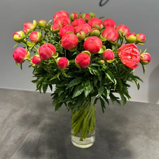 Кораловый пион — это настоящий взрыв цвета и энергии! Роскошные коралловые пионы в большом количестве создают ощущение праздника и радости. Каждый цветок наполнен символикой: пионы воплощают счастье, процветание и гармонию. Их яркий коралловый оттенок дарит тепло и позитив, создавая особое настроение в любой день.