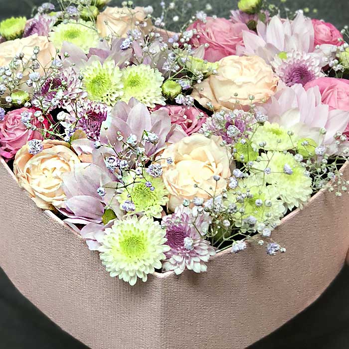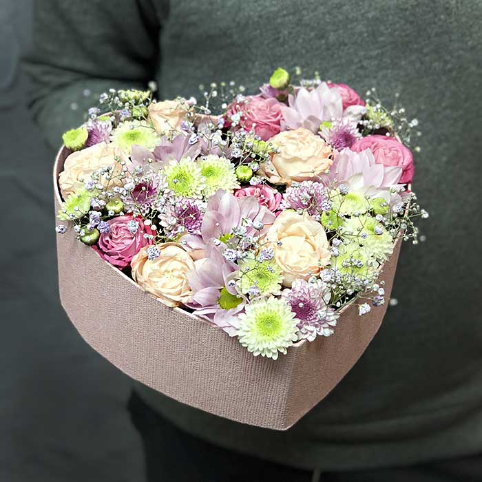 Роскошь чудесного яркого весеннего дня подарит эта оригинальная коробочка – все цветы в ней подобраны для того, чтобы вы ощутили весну в сердце в любое, даже холодное время года. Эта композиция для романтичной, нежной и утонченной натуры, к которой у вас самые нежные чувства. Отличный вариант для того, чтобы рассказать о своей сердечной тайне. Такое сердечко – это незабываемое любовное послание. Мы постарались заключить в эту коробочку всю нашу любовь и мечту о весеннем возрождении природы. Делая покупку на нашем сайте, вы можете быть уверены в качестве нашей продукции и в том, что цветы будут доставлены точно в срок.